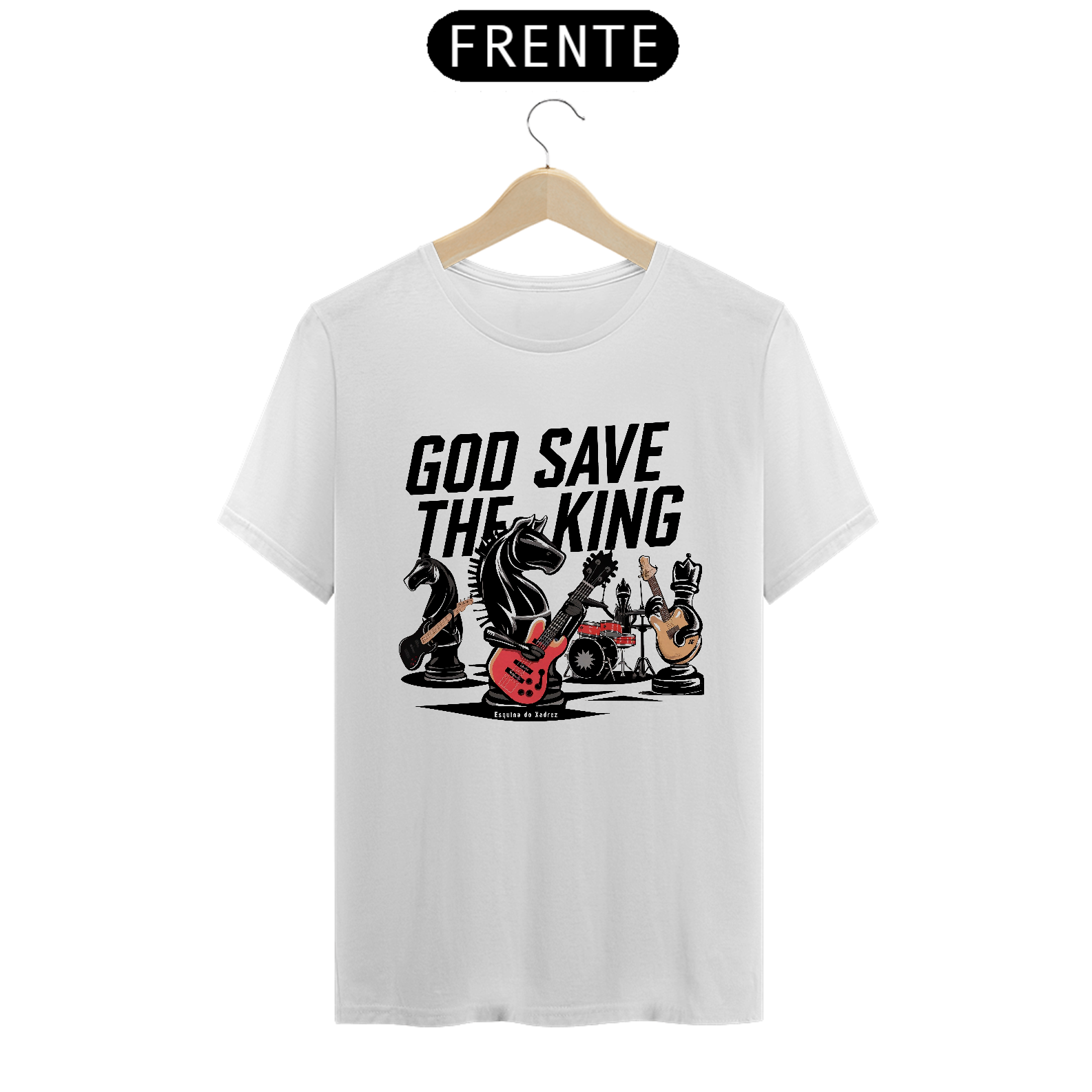 A camiseta "God Save the King" da Esquina do Xadrez é uma peça única e cheia de atitude, ideal para quem ama xadrez e se identifica com o poder e a imponência do rei no tabuleiro. Com uma estampa ousada e detalhada, ela celebra a figura central do jogo, trazendo um design criativo e moderno. Confeccionada em 100% algodão, oferece conforto e estilo para qualquer ocasião. Perfeita para enxadristas e fãs de designs exclusivos, essa camiseta combina elegância e paixão pelo xadrez de uma forma única.