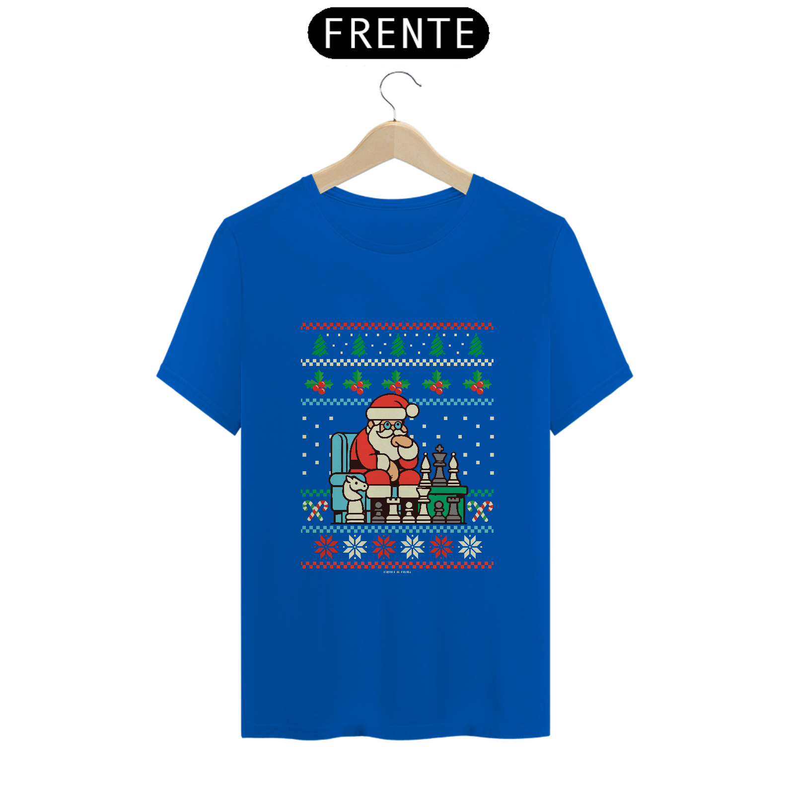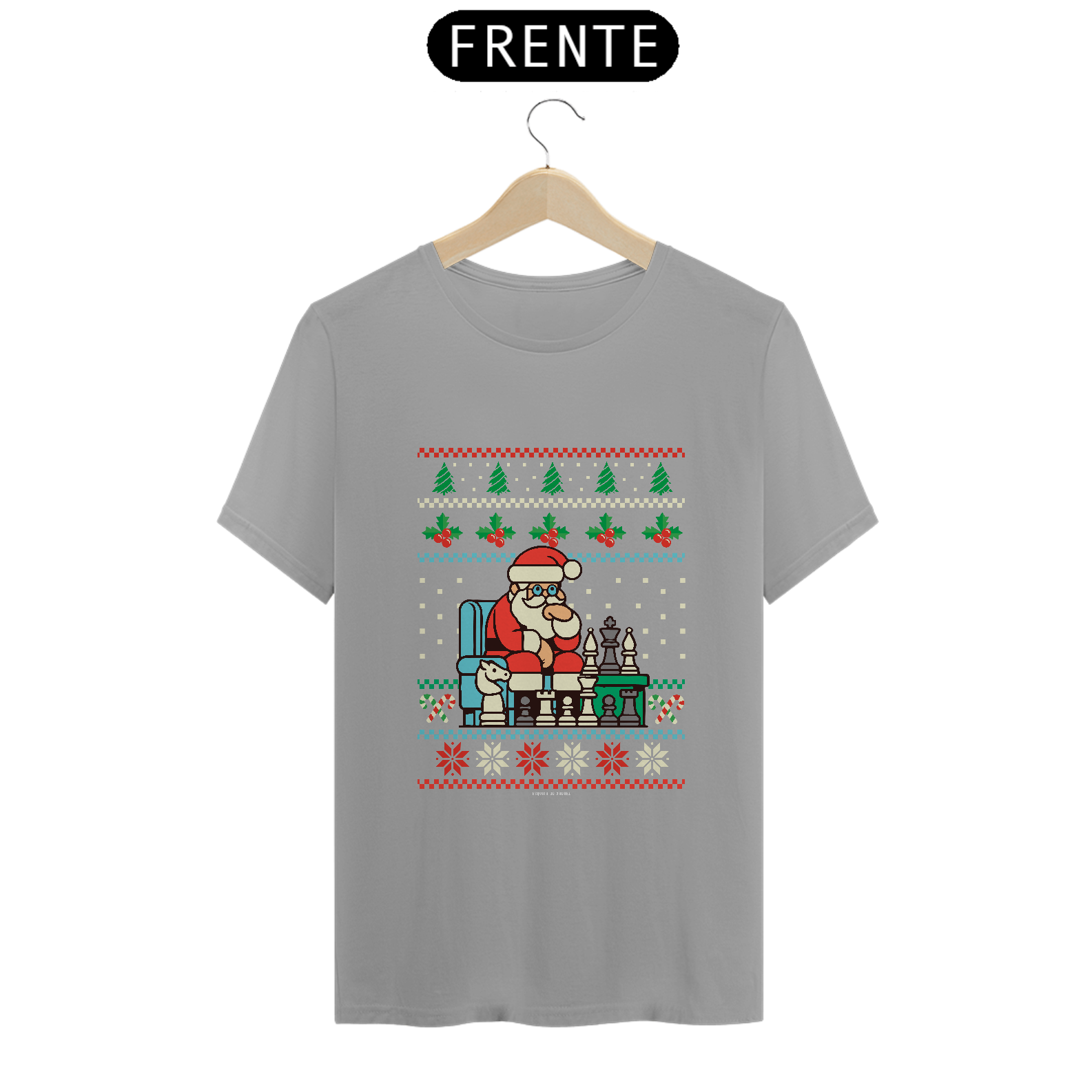 A camiseta "Papai Noel" da Esquina do Xadrez traz uma estampa divertida e única: o bom velhinho concentrado em uma partida de xadrez. Perfeita para o Natal, ela une espírito festivo e paixão pelo jogo!