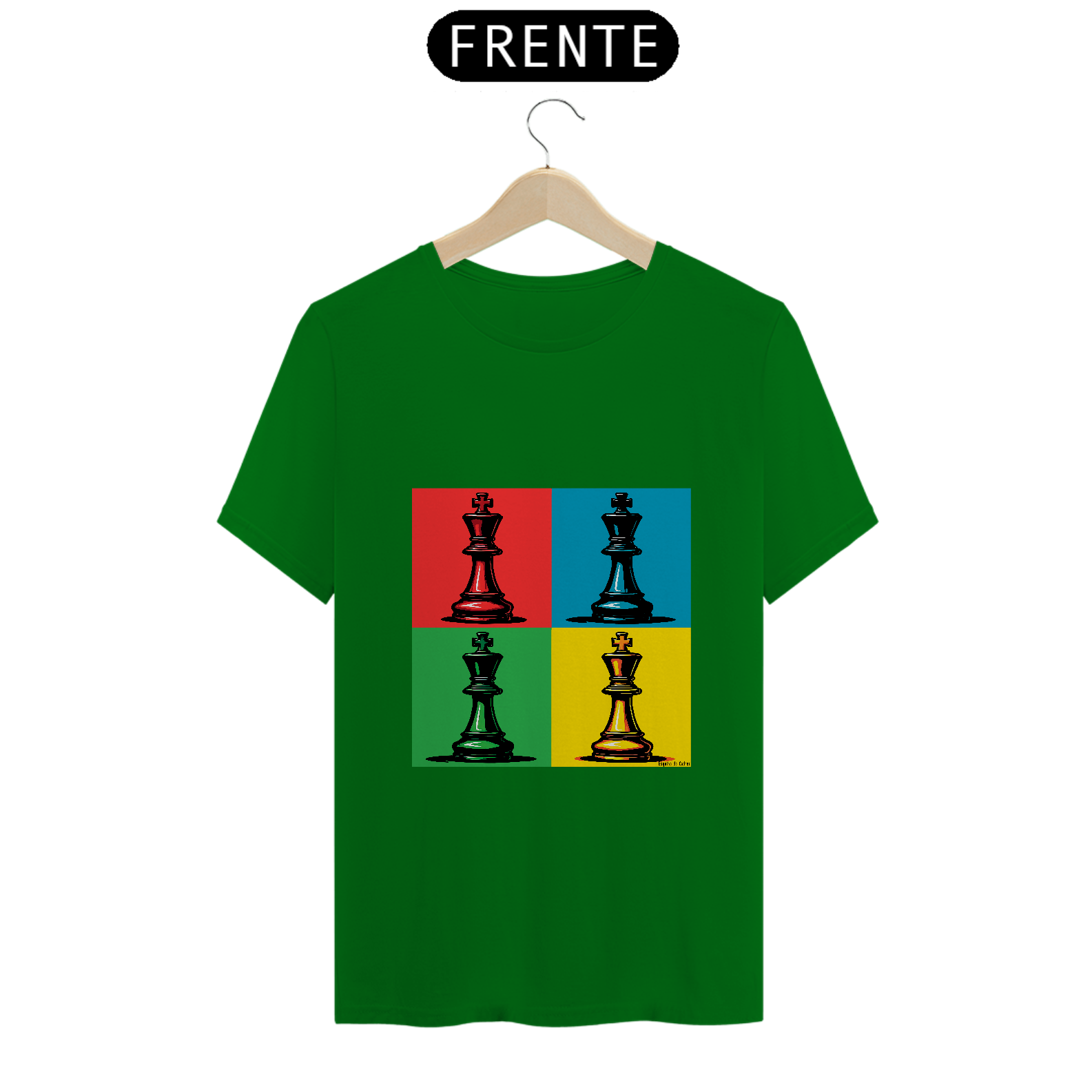A camiseta **Rei Pop Art** da Esquina do Xadrez traz o rei em um estilo vibrante e artístico inspirado na Pop Art. Com cores marcantes e um visual moderno, ela transforma a peça mais importante do xadrez em um ícone cultural, perfeito para quem quer unir arte e xadrez no dia a dia. Essa peça é ideal para jogadores que buscam uma expressão original, além de ser uma homenagem ao status e importância do rei no jogo.